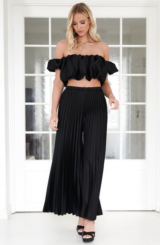 Szykowny, zwiewny i zniewalająco stylowy – ten plisowany komplet, dostępny w różnych kolorach, to Twój idealny wybór na elegancki letni wieczór lub modny spacer po mieście. Błyszczące satynowe wykończenie, kobiecy fason i wyrafinowane plisy tworzą stylizację, która jest zarówno wygodna, jak i olśniewająca.